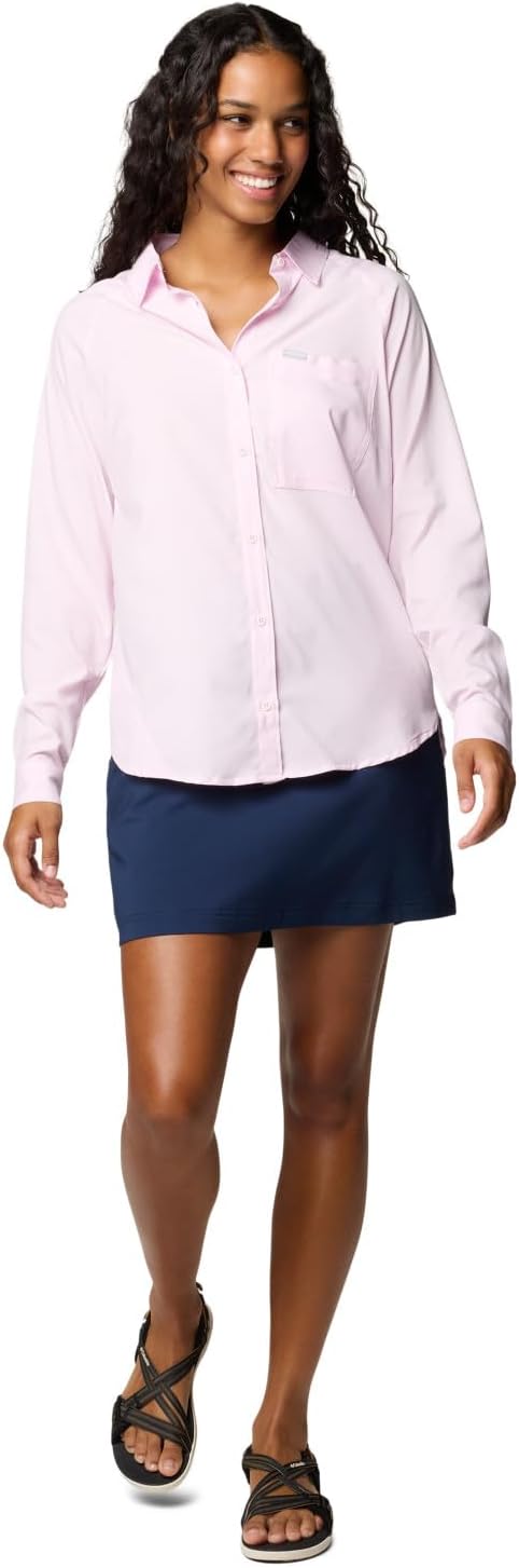 Hit the trail, head to brunch, or do both in this ultra light go-anywhere shirt. It’s sun-shading, sweat-wicking, and made with 100% recycled material. Columbia offers this shirt in multiple colors and sizes. Extended sizing available. Regular fit.