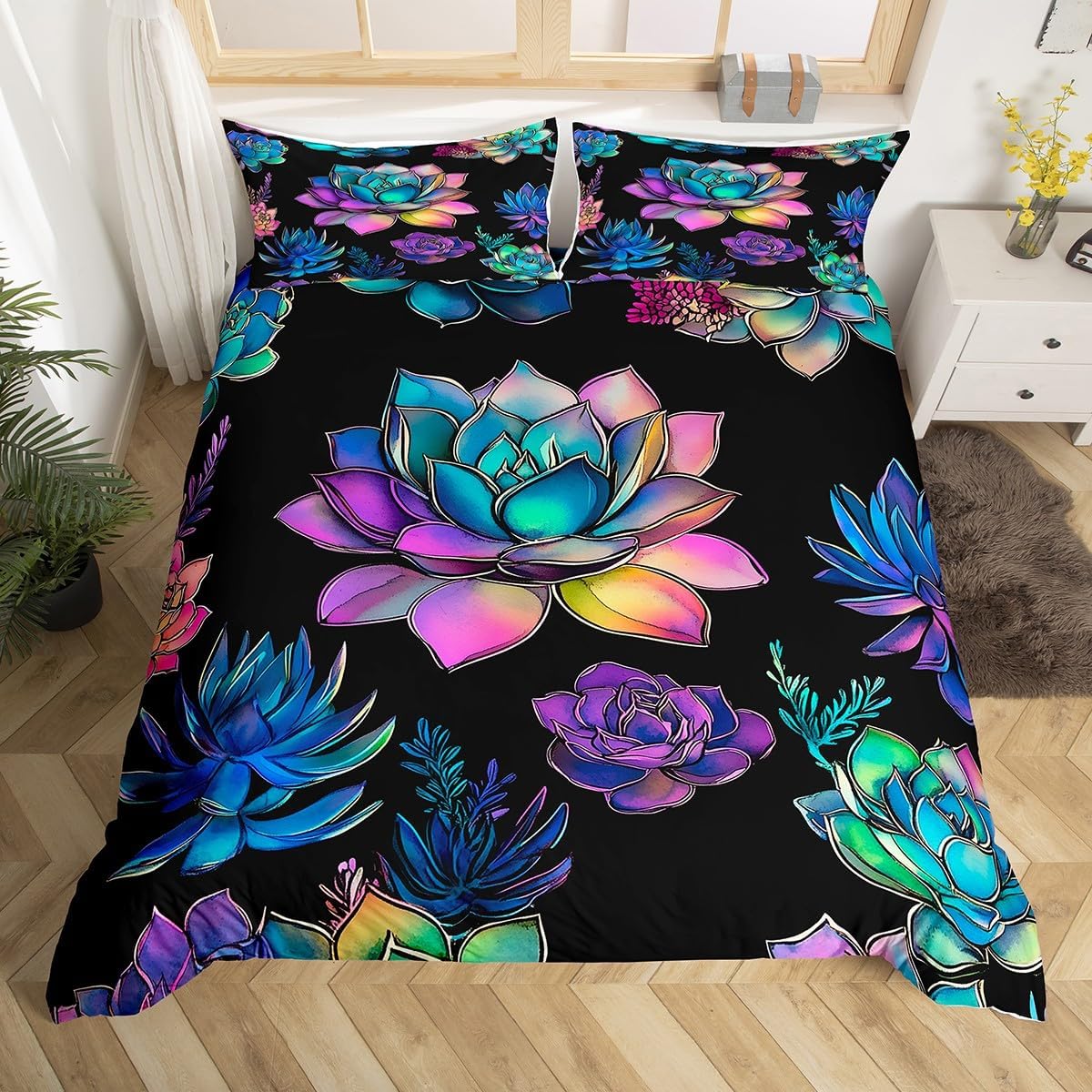 I: Package Include 1 Duvet Cover and 2 Pillowcases The Modern Duvet Cover Set Pattern Bedding Set,Simply Decorating Your Rooms Any Time You Want,Bringing You Fresh Feel for Year Round Use. Long Lasting Made From Polyester Microfiber,The Duvet Cover Offers Long - Lasting Strength,A Noticeably Soft Hand Feel. II :Size Information Twin SizeL: 2Pcs Duvet Cover Set:1 Duvet Cover 68"x90"(173x228cm),1 Pillowcase 20"x30"(51x75cm),Without Comforter. Full Size: 3Pcs Duvet Cover Set): 1 Duvet Cover 79"x90"(200x229cm),2 Pillowcase 20"x30"(51x75cm),Without Comforter. Queen Size: 3Pcs Duvet Cover Set:1 Duvet Cover 90"x90"(229x229cm),2 Pillowcase 20"x30"(51x75cm),Without Comforter. King Size: 3Pcs Duvet Cover Set:1 Duvet Cover 104"x90"(264x229cm),2 Pillowcase 20"x36"(51x92cm),Without Comforter. III: Personalize Your Bedroom Beautiful Design and Colorful Print,Makes Your Bedroom Unique and Brings You a Wonderful Dream. IV: Washing Instructions Machine Wash Separately In Cold Water,Hang Dry,Do Not Bleach. V: Occasion The Cute Soft Duvet Cover Bedding Sets Designed for Children,Adult,Men,Women,Teens. This Duvet Cover Set Is Also Suitable for Full Seasons,Spring,Summer,Autumn and Winter. It Also Can Be Used As a present for Your Family and Friends. Such As Halloween,Christmas.