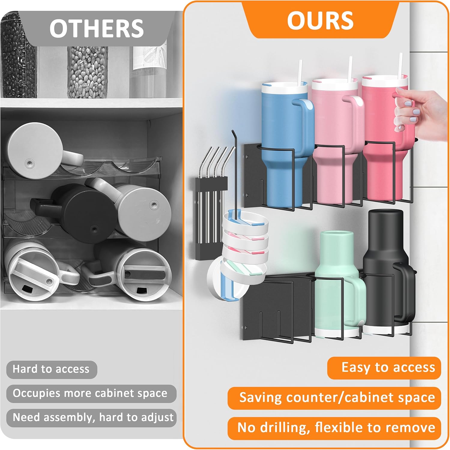 Two Flexible Installation Methods: No drilling or tools needed—simply attach the magnetic cup holder to the refrigerator or any metal surface for instant use. Magnetic design lets you effortlessly move it to other metal surfaces—perfect for renters or those who like to rearrange. Use included screws for secure installation on drywall or wood. Designed for renters and homeowners alike, adapt to any space effortlessly. Practical Stanley Storage Gift Idea: This versatile magnetic stanley cup holder for fridge is a must - have for anyone who loves collecting their stanley! Beyond holding stanley cups, it's also compatible with regular cups, and even tumblers, shakers, keeping your counter tidy with ease.