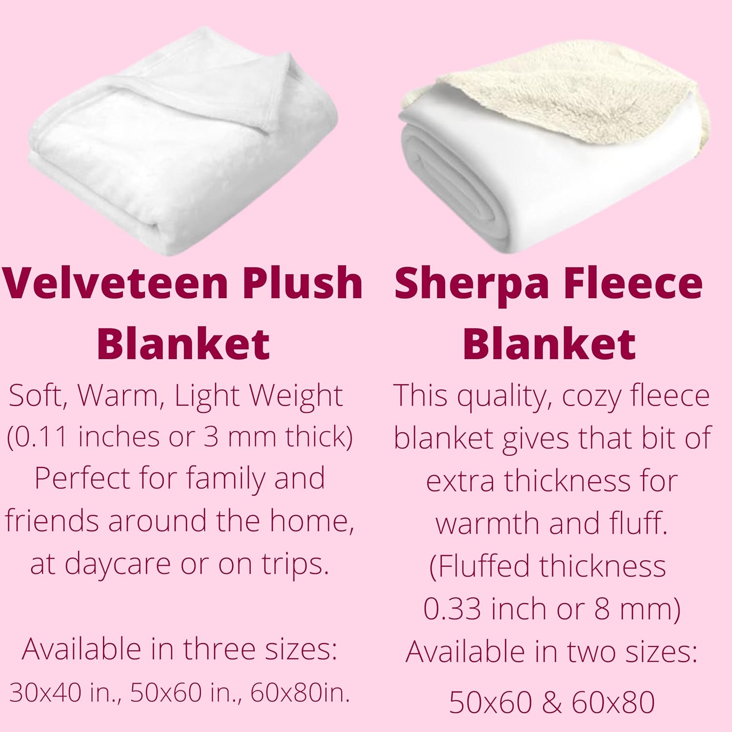 Are you kids bored of using the same old blanket? Then our personalized velveteen unicorn design is perfect for your kid with their name on it.【Super Quality Blanket 】Made with Velveteen which has more body and is less easily draped than velvet. It imparts warmth and is used for women’s and children’s garments and for draperies and bedspreads. So, it the most comfortable and Soft material in market which we used in to design our blankets for kids.After a long day of school and play, give the comfort to your children with plush, warm blanket to enjoy happy hours of comfort, while watching their favorite TV shows or playing computer games, especially story reading, studying, sleeping, camping and picnicking.【Little Kids will love it! 】All kids need a cozy blanket that warms and reassures them. They will love the cute unicorn and rainbow design along with their name drawn on this pretty plush surface that will brighten up their bedroom.【A Perfect Gift Idea】This children's blanket is the perfect birthday present. This unique gift is also perfect to take with you on travelling or on long car trips. 【Packing】Shipped in self-sealing poly mailers with high adhesive seal strip and UV protecting coating inside. Packages are tightly secured providing excellent protection during shipments. If you want to give it as Gift, roll it up and put a ribbon around it. 【Specifications】Size: 50 inches x 60 inches (127x152cm)Material: 100% Polyester (Extremely Strong and Durable, Quick Dry, Super Soft) Double Needle Stitched which makes it long-lasting and durable. 【Washing Instructions】Don't Dry Clean, Don't Iron, Line Dry, Do not Bleach, HandWash.