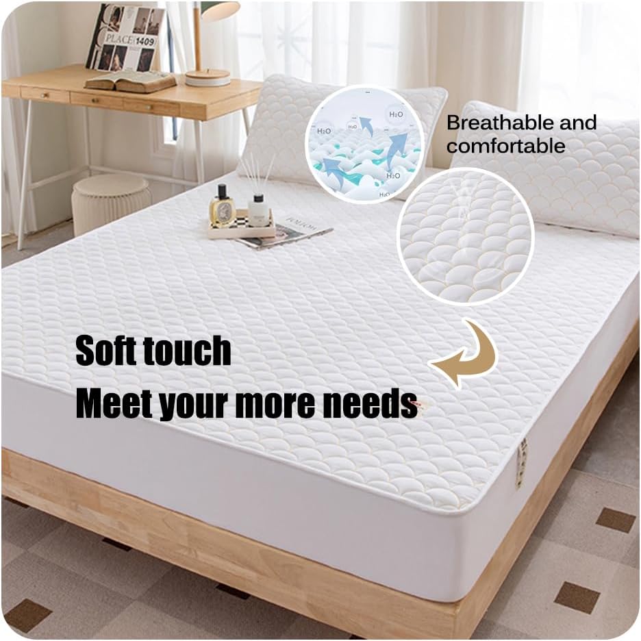 Want to get rid of a doll and boring life?Let's start changing from this moment on,Choose our matress protector and you will immediately fall in love with it,Heal all unhappiness and fatigue.Use this Cotton Quilted Mattress to make your sleep comfortable.This matress cover is Machine Washable for easy care It is breakable and comfortable, with all cotton material free of hazardous substances, ensuring your high quality and comfortable sleep Our philosophy has always been to provide you with the best and most comfortable sleep.The material is made of mother and baby grade raw cotton, with a fiber length of 36+millimeters, a fiber fineness of 161mtex, and a 6.9% short fiber index. The touch feels soft and delicate, providing you with an excellent comfortable experience.Size:Twin39x79inch (100X200CM)Full47x79inch (120X200CM)Queens60x80inch (150X200CM)King78x80inch (200X200CM)Cal King 72x84 inch (180X220CM)Style: There are two styles to choose from: A/BColor: white/gray/beige/light pink/khaki/blue/pink