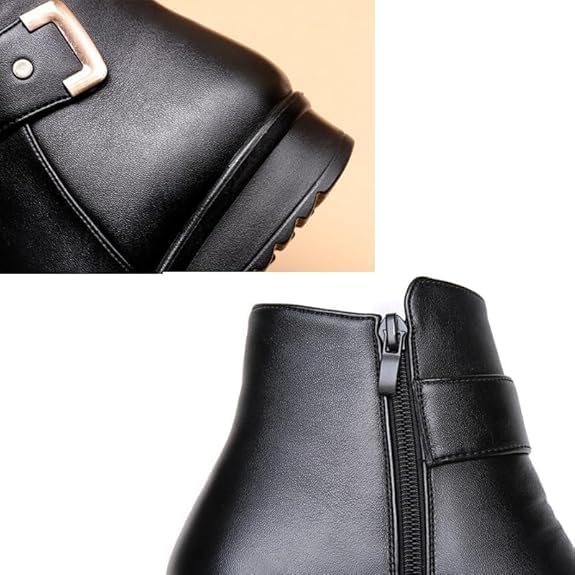 Women's Metal Buckle Genuine Leather Wool Orthopedic Boots,Winter Warm Slip On Fur Lined Snow Boots with Side Zipper The classic round head design offers a comfortable, non-binding fit, coupled with the ankle metal buckle design, making these boots a trendy accessory for any outfitWhether you're going for a casual or dressed-up look, our Women's Metal Buckle Genuine Leather Wool Orthopedic Boots are the perfect choiceOur women's metal buckle genuine leather wool orthopedic boots with side zipper make it convenient to slip on/off Specification: Color: Black,Brown Sole Material: Polyurethane Popular Element: Metal Buckle Wearing Method: Side ZipperFunction: Warm, Wear-Resistant